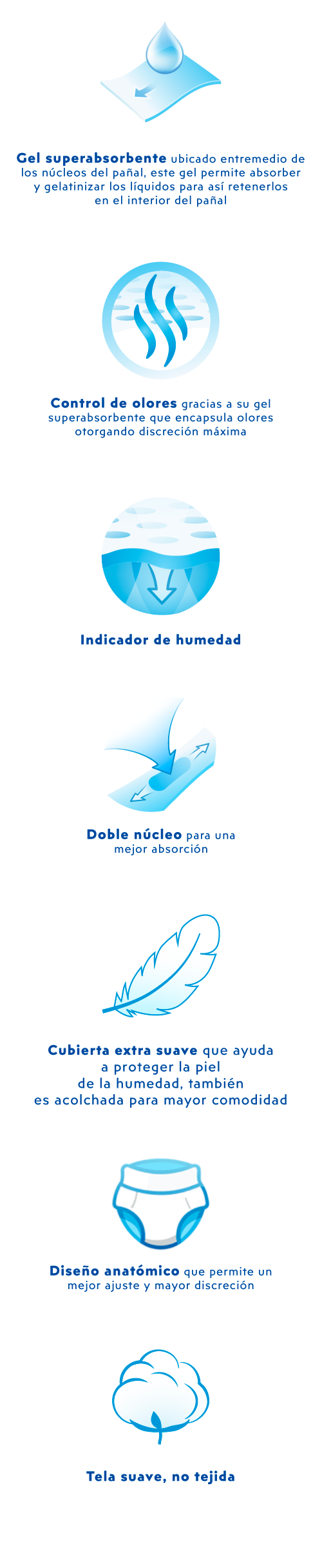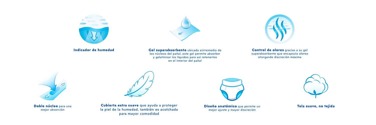Diseño tipo pull-up: Su diseño tipo pantalón permite una colocación rápida y sencilla, sin necesidad de ajustar cinturas ni velcros, lo que lo hace ideal para el usuario final y cuidadores.