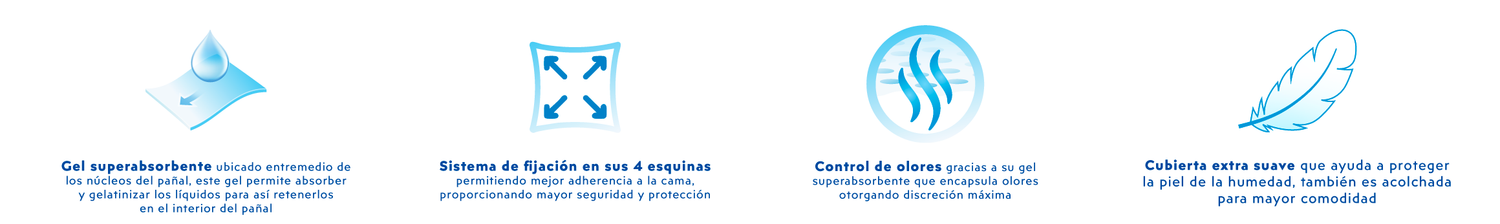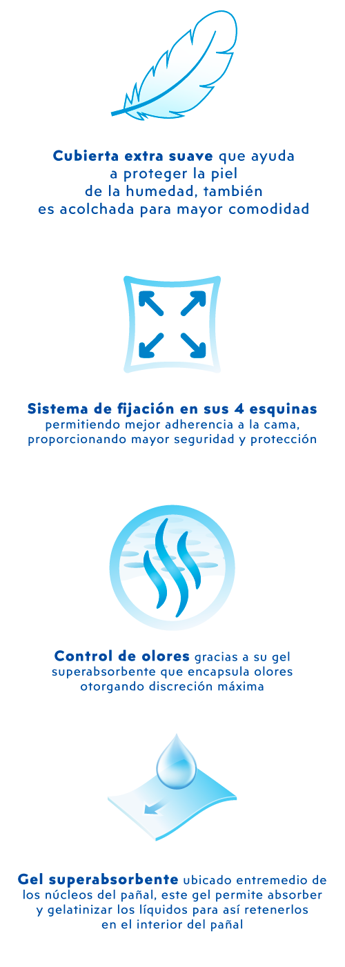 Alta absorción y control de humedad: Su núcleo absorbente ayuda a retener líquidos y mantener seca la superficie de contacto, promoviendo una mayor higiene y comodidad.
